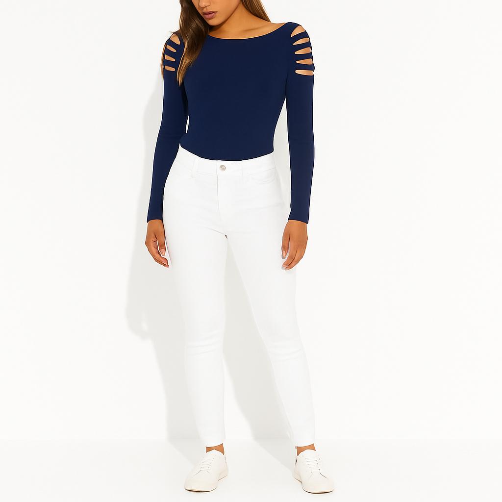 Questa maglia con dettagli cut-out sulle spalle è il perfetto incontro tra grinta e femminilità. Il suo design unico esalta la silhouette e regala un tocco fashion ad ogni outfit, dal casual con jeans e sneakers al più audace per le tue serate. -