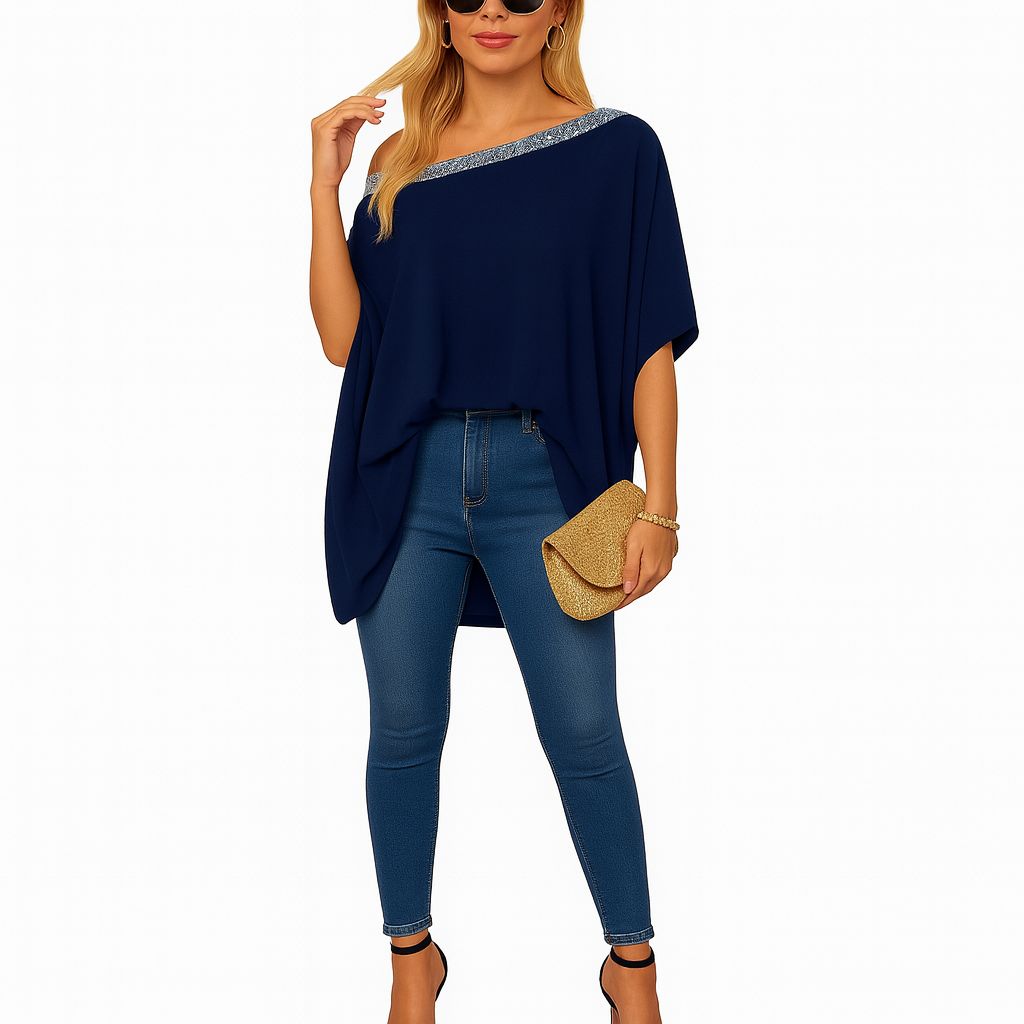 - Un tocco di eleganza che non passa inosservato 💎. Questa maglia con dettaglio brillante al collo unisce comodità e stile in un capo versatile, perfetto dal giorno alla sera.”