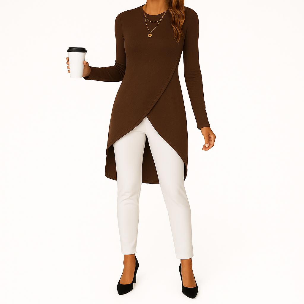 La maglia che non può mancare nel tuo guardaroba ✨Questa maglia è pensata per esaltare ogni tipo di fisicità con la sua linea elegante e il taglio asimmetrico che slancia la figura. Il tessuto confortevole e i dettagli curati la rendono un capo versatile: perfetta con un pantalone classico per un look raffinato, ma ideale anche con un jeans o un leggings per un outfit più casual e dinamico.Grazie alla sua vestibilità morbida e allo stile moderno, potrai indossarla sia in ufficio che nel tempo libero, sempre con la certezza di sentirti comoda, femminile e impeccabile. È quel capo che ti fa sentire subito pronta, senza bisogno di aggiungere altro.💎 Perché sceglierla:Taglio unico e avvolgente che valorizza la silhouetteVersatilità assoluta: dal giorno alla sera con un semplice cambio di accessoriUn capo che unisce comodità, eleganza e qualità artigianale🙏 Il nostro grazie più sinceroSiamo un’azienda fatta tutta di giovani: grazie ai vostri acquisti riusciamo a portare lo stipendio a casa e a dare valore al nostro lavoro ogni giorno.Tutta la nostra produzione è italiana, ogni capo è ideato, tagliato e cucito interamente nel nostro laboratorio, con la passione e la cura che solo il vero Made in Italy sa garantire.