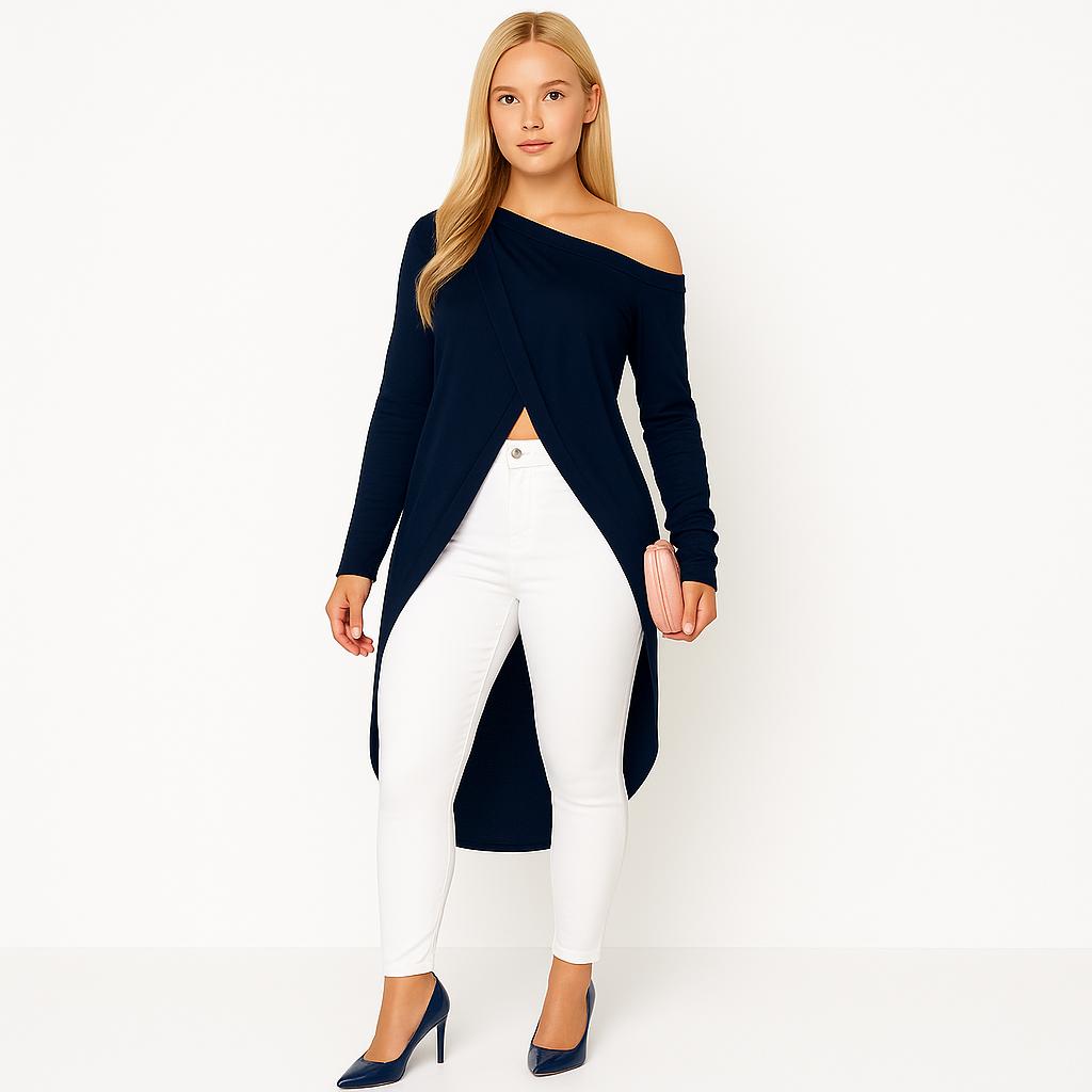 Maglia elegante e versatile ✨Questa maglia asimmetrica con scollo a spalla scoperta è pensata per adattarsi a più occasioni.Il suo design unico permette di indossarla come capo fashion da sera, abbinata a pantaloni o gonne eleganti, oppure come capo casual da giorno, perfetta anche con jeans e accessori più semplici.La sua linea morbida e la cura nei dettagli rendono questo modello un must-have per chi desidera uno stile raffinato senza rinunciare alla comodità.🙏 Grazie per aver scelto i nostri prodotti• Siamo un’azienda giovane, formata da ragazzi giovani con tanta passione.• Siamo una piccola fabbrica dove ogni prodotto viene tagliato e cucito con cura artigianale.