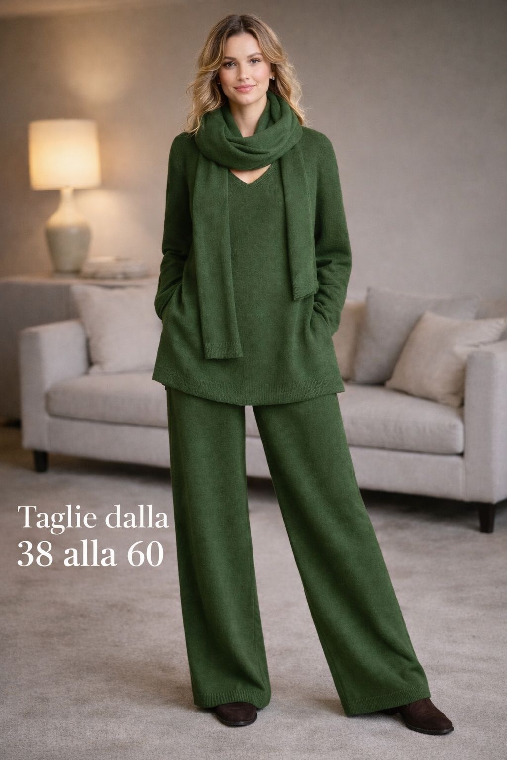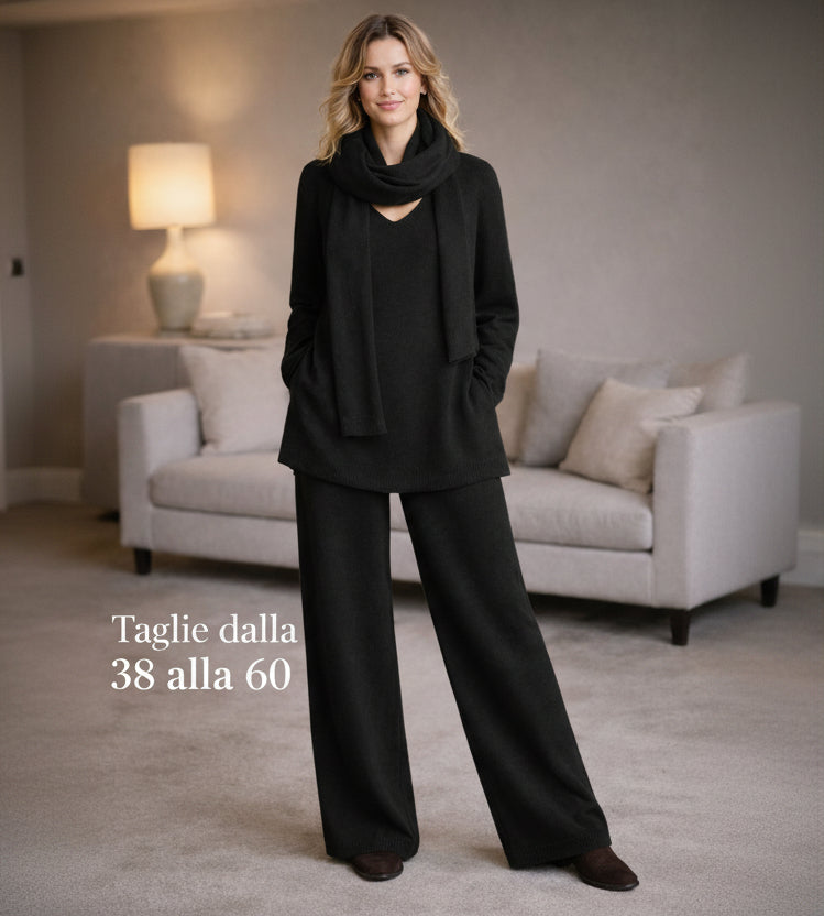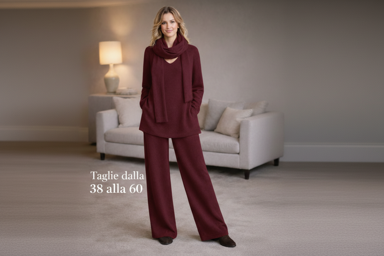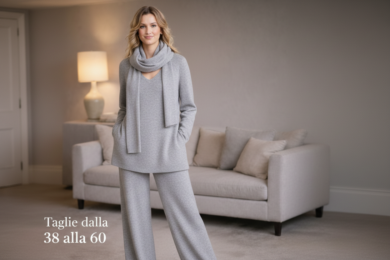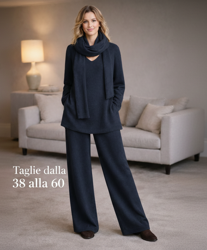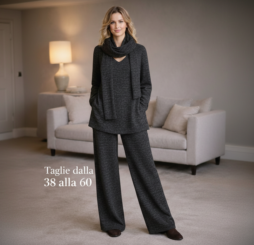 ✨ Il completo che risolve comfort, vestibilità ed eleganza ✨Questo completo nasce per farti sentire bene davvero, dal primo momento in cui lo indossi.🧶 Maglia in lana morbida e caldaLa maglia è realizzata in lana soffice e avvolgente, calda ma piacevole sulla pelle.La scollo a V slancia la figura e dona eleganza, mentre la sciarpa coordinata completa il look con stile e praticità.👖 Pantalone con elastico in vitaIl pantalone è pensato per il comfort reale:• elastico morbido in vita• non stringe• non segna• accompagna le forme con naturalezza🏭 Produzione artigianale veraSiamo una fabbrica:ogni capo viene tagliato e cucito uno per uno, non prodotto in serie standard.Questo fa la differenza nella vestibilità.