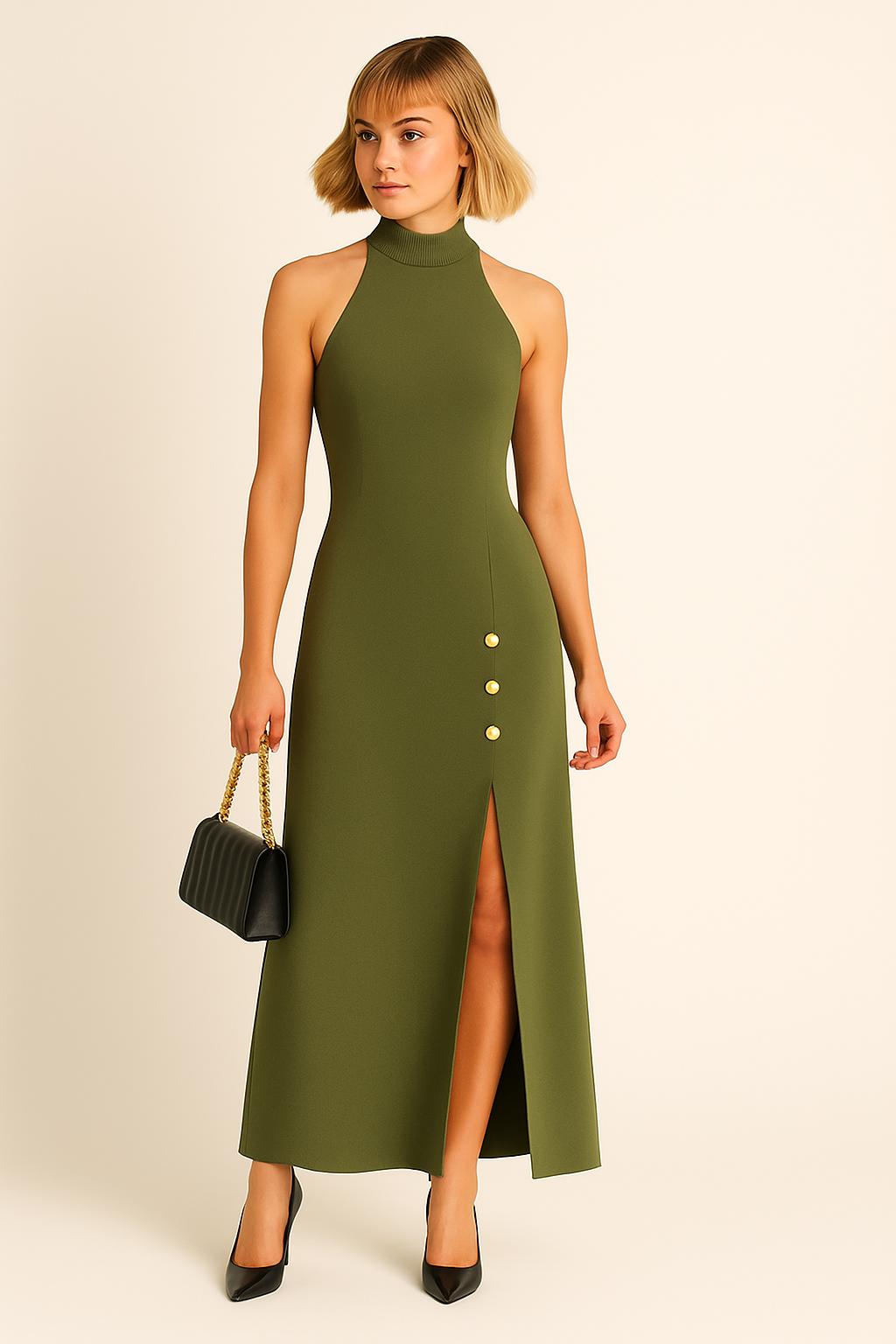 Realizzato in tessuto elastico di alta qualità, questo abito avvolge le forme con eleganza e comfort, garantendo una vestibilità perfetta in ogni occasione. Lo stile minimal e raffinato.
