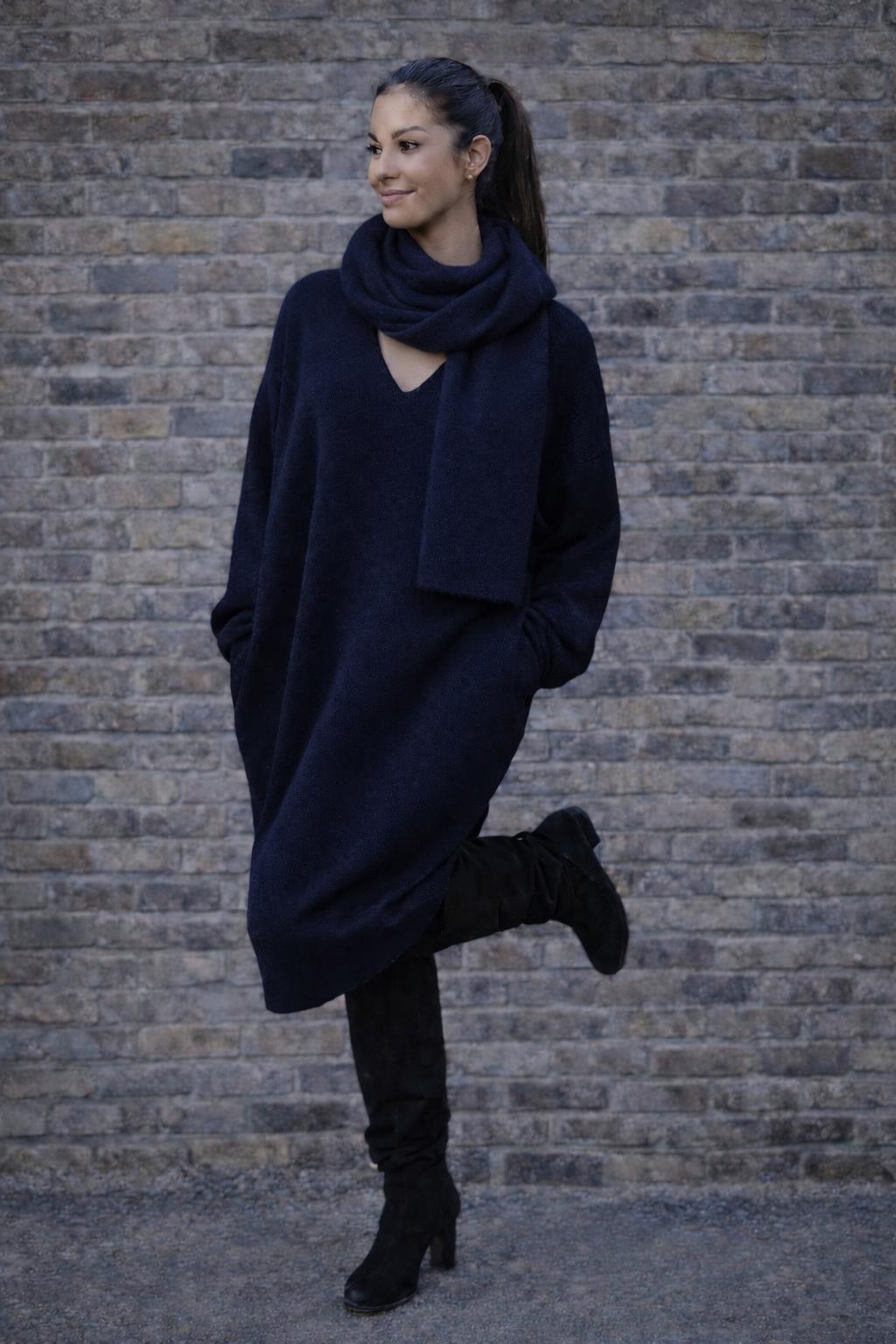 Può essere portato con stivali, anfibi o sneakers. Da solo come abito, oppure con leggings o pantaloni slim. Con una sciarpa o uno sciarpone diventa subito più caldo e raffinato. -